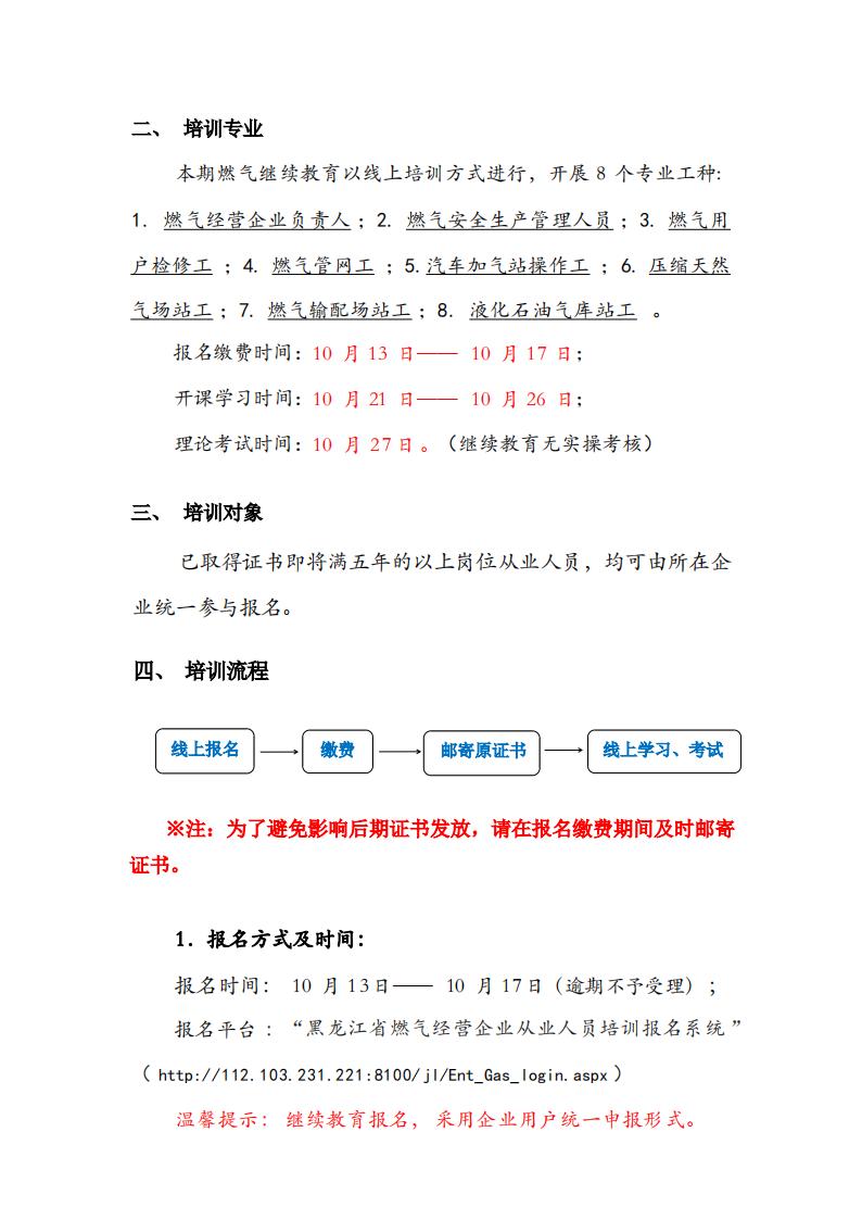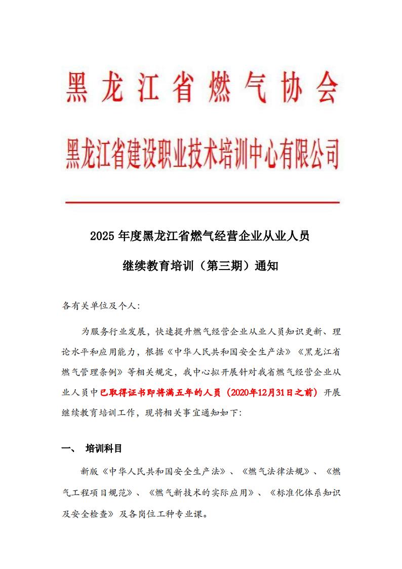 2025 年度黑龙江省燃气经营企业从业人员继续教育培训(第三期)通知