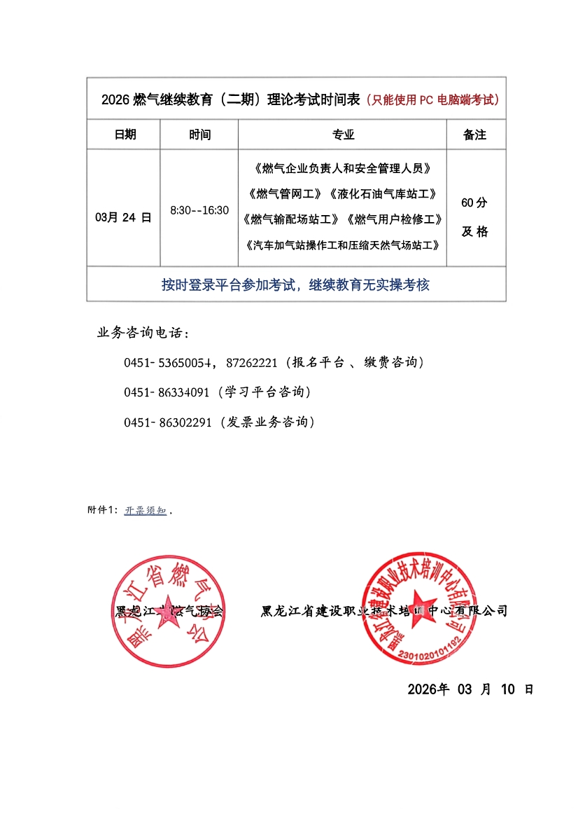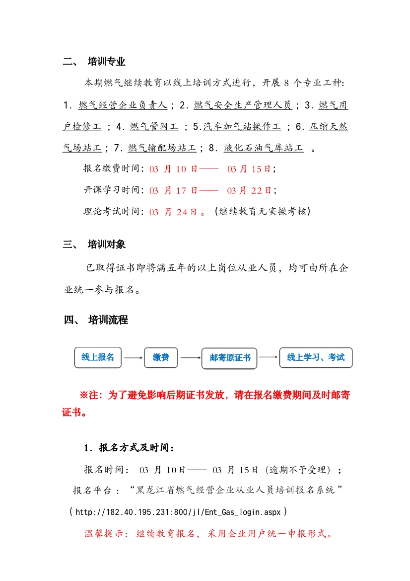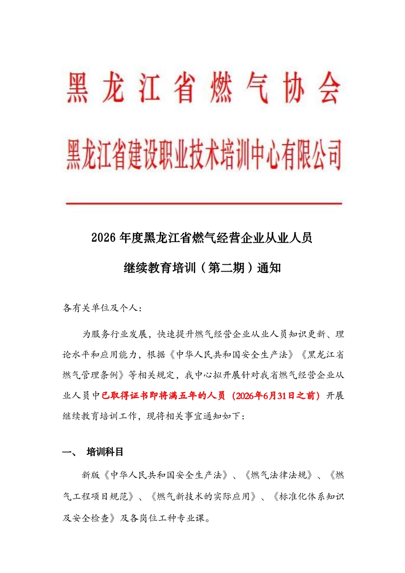 2026年度黑龙江省燃气经营企业从业人员继续教育培训(第二期)通知