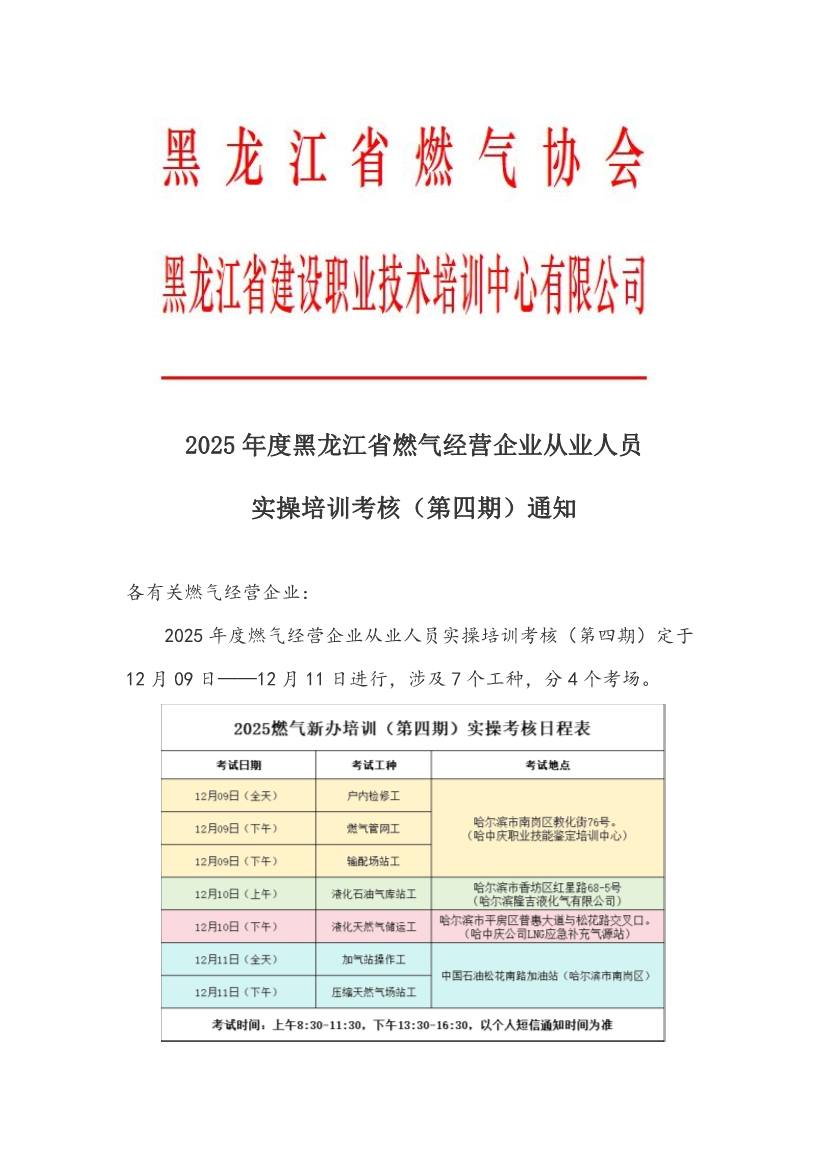 2025年度黑龙江省燃气经营企业从业人员实操培训考核(第四期)通知