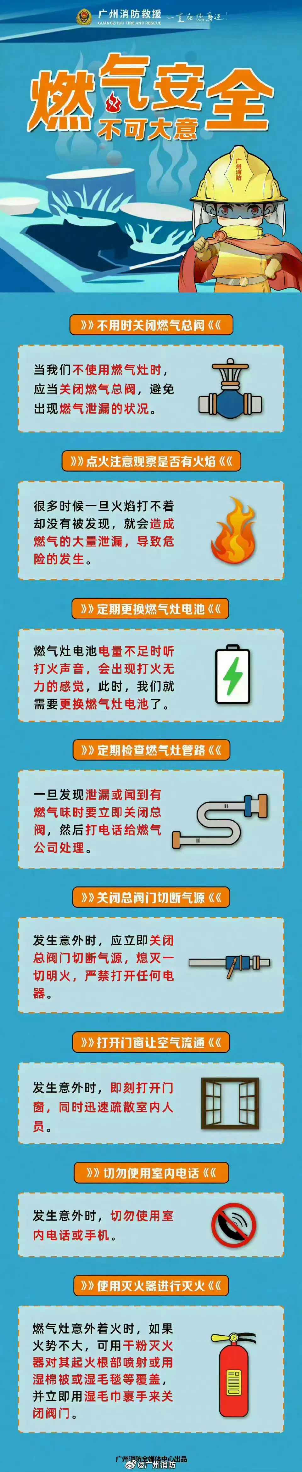 餐饮场所厨房内用火、用电、用气集中,火灾隐患较多消防安全尤为重要燃气使用要注意些什么?以下燃气安全小提示请记住!